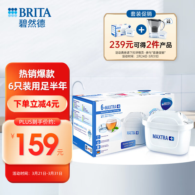 碧然德(BRITA)滤水壶滤芯 Maxtra+多效滤芯6只装 过滤净水器滤芯 家用滤水壶滤芯 新升级标准版滤芯价格:171.00元!