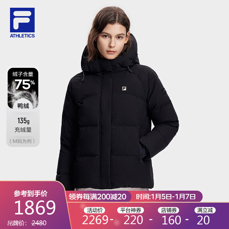 FILA斐乐官方女士羽绒服2023冬季简约基础健身运动连帽上衣鸭绒价格:2269.00元!