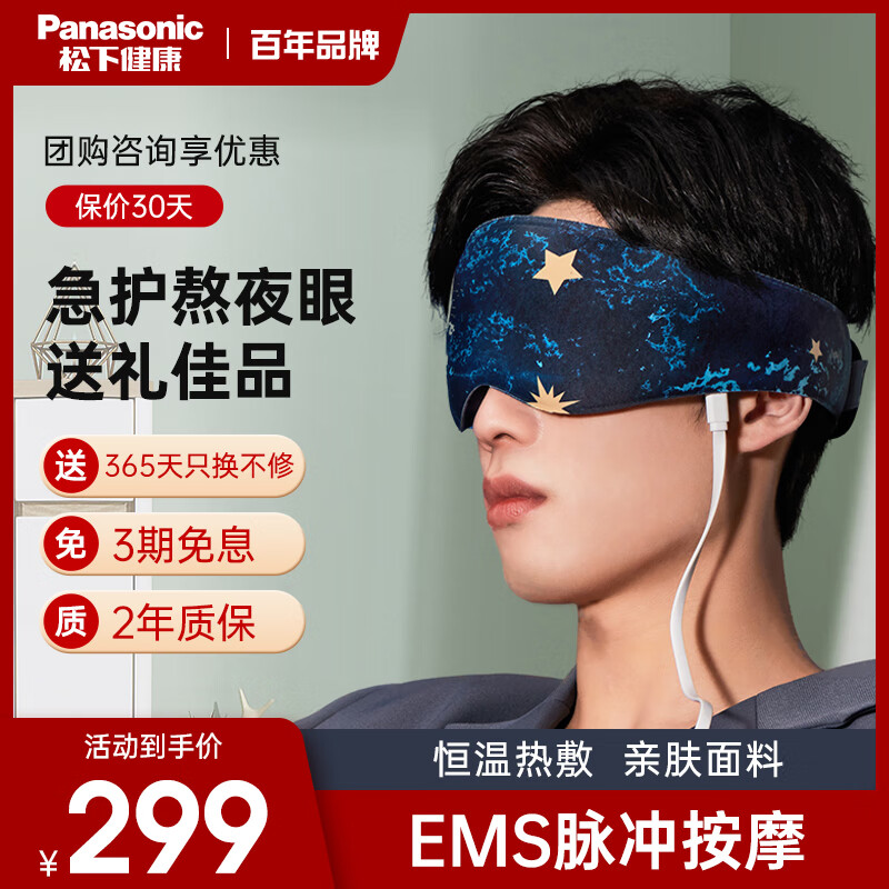 松下(Panasonic)EMS按摩眼罩三档智能控温眼部按摩器按摩仪护眼仪 情人节 生日礼物年会礼品EW-RAD11(星空蓝)价格:339.00元!