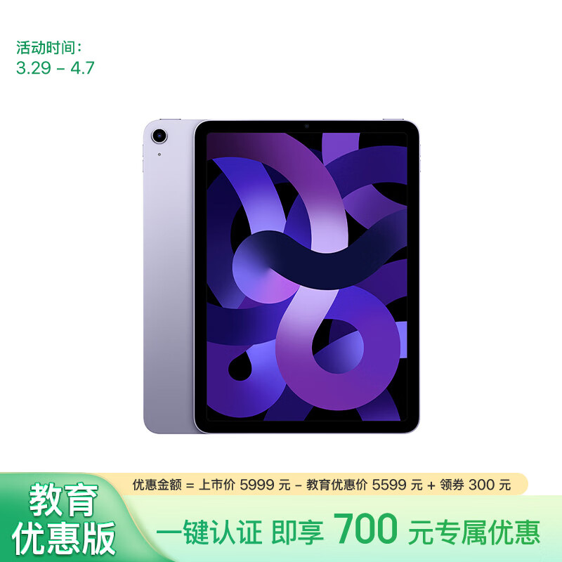 Apple/苹果【教育优惠】 iPad Air 10.9英寸平板电脑 2022款(256G WLAN版/MME63CH/A)紫色价格:5599.00元!