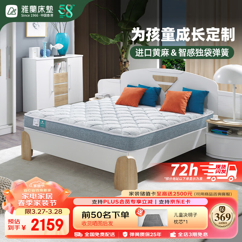 雅兰抑菌面料进口乳胶黄麻床垫 独袋弹簧er童床垫 蘭精灵 1.35*2米价格:3159.00元!