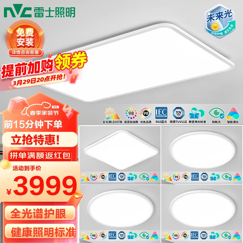 雷士(NVC)LED吸顶灯现代简约客厅高端智控Ra98全光谱健康护眼灯具 未来光A价格:5289.00元!