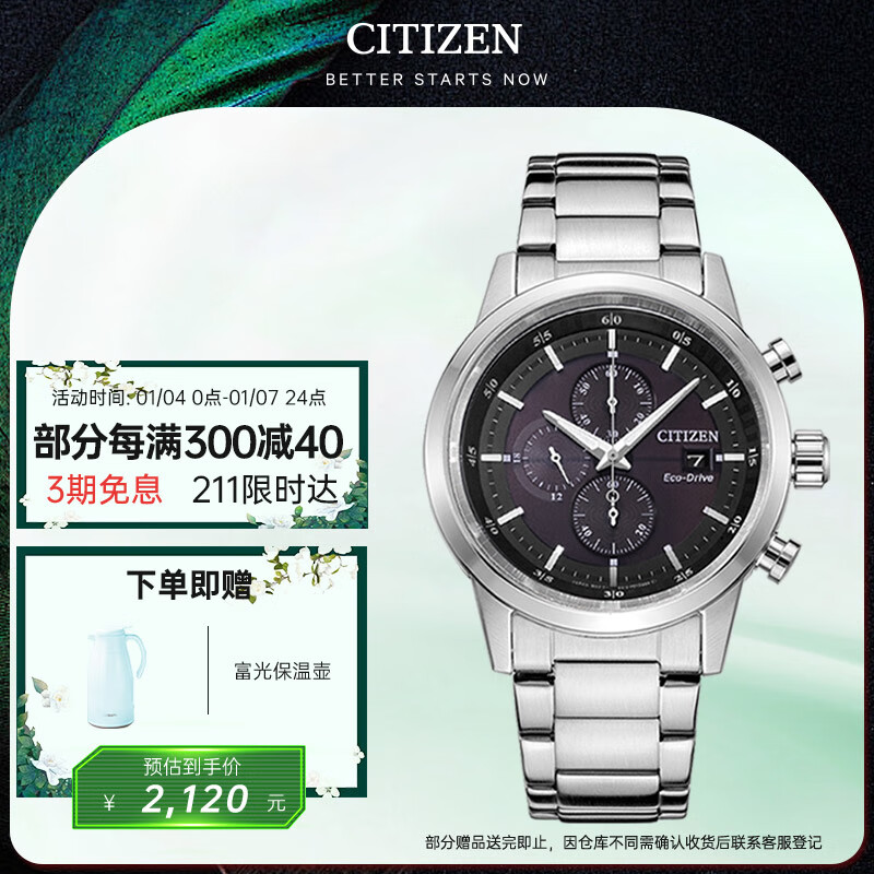 西铁城(CITIZEN)手表男日韩表光动能三眼黑盘日显钢带商务礼物CA0610-52E价格:2340.00元!