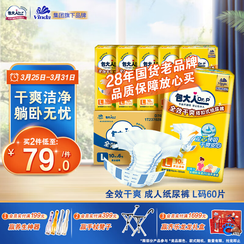 包大人(Dr.P)干爽型成人纸尿裤L60片(腰围:80-130cm)老年人产妇尿不湿价格:143.00元!