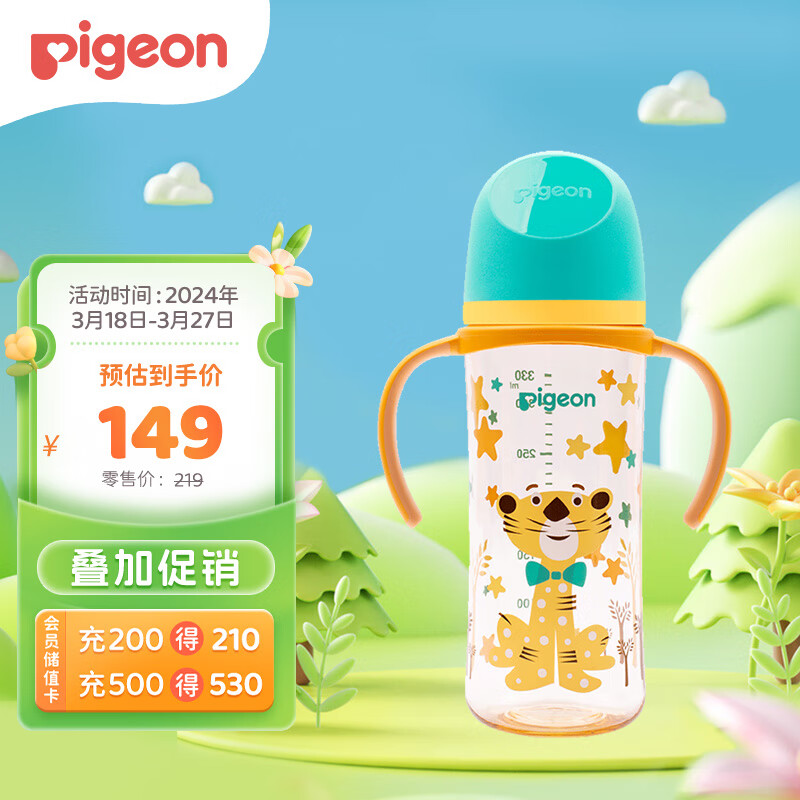贝亲(Pigeon)第3代 双把手PPSU奶瓶 330ml-绅士豹 L号 6个月以上 AA223价格:154.50元!