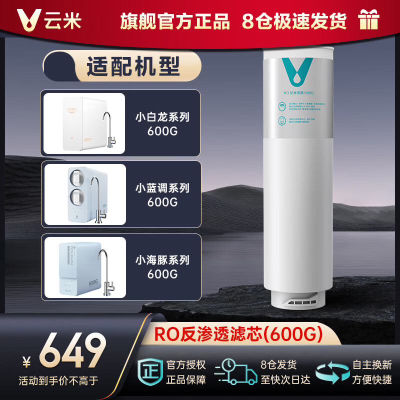 云米(VIOMI)净水器滤芯适配小蓝调 小海豚 小白龙400G、600G 1号5in1适用于Cross 600G/Cross 800G滤芯 2号RO膜600G(仅支持600G机型)价格:649.00元!