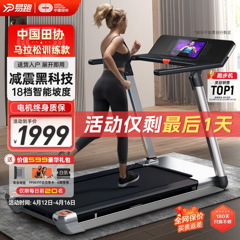 易跑【中国田协官方供应商】M1马拉松跑步机家庭用爬坡折叠健身房器材价格:1979.00元!
