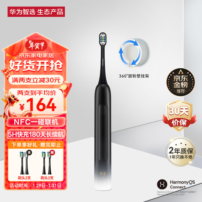 华为智选力博得电动牙刷 智能声波牙刷3 新年礼物 牙医推荐清洁亮白 180天长续航 优漾3 星夜黑价格:179.00元!