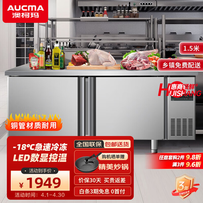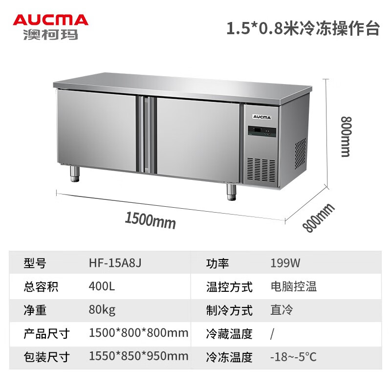 澳柯玛(AUCMA)冷藏工作台冰柜商用冷藏工作台操作台卧式冰箱奶茶设备平冷水吧台厨房冰箱冷柜 1.5米丨冷冻丨HF-15A8J价格:1949.00元!