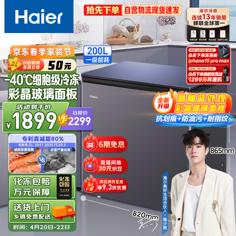 海尔(Haier)200升-40℃彩晶低霜小冰柜家用商用 冷藏柜冷冻柜冰柜小型小冰箱小型冷柜BC/BD-200GHEPGD以旧换新价格:2049.00元!