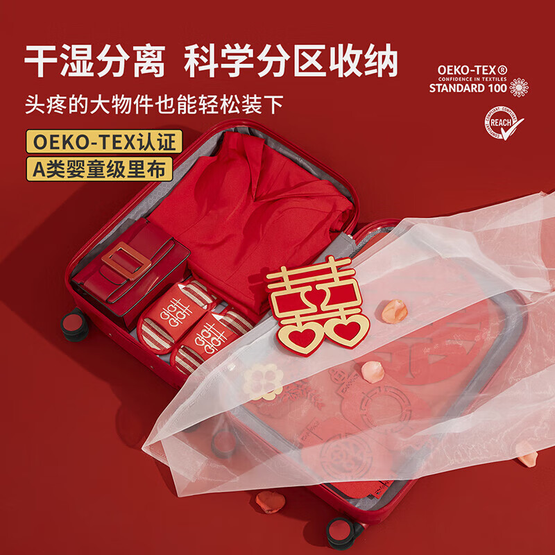 米熙红色行李箱结婚陪嫁拉杆箱子行李箱大容量密码旅行箱26英寸高颜值价格:659.00元!