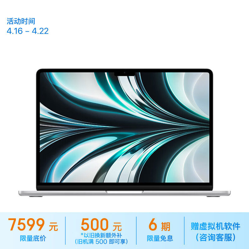 Apple/苹果2022款MacBookAir13.6英寸M2(8+8核)8G256G银色轻薄笔记本电脑MLXY3CH/A价格:8999.00元!