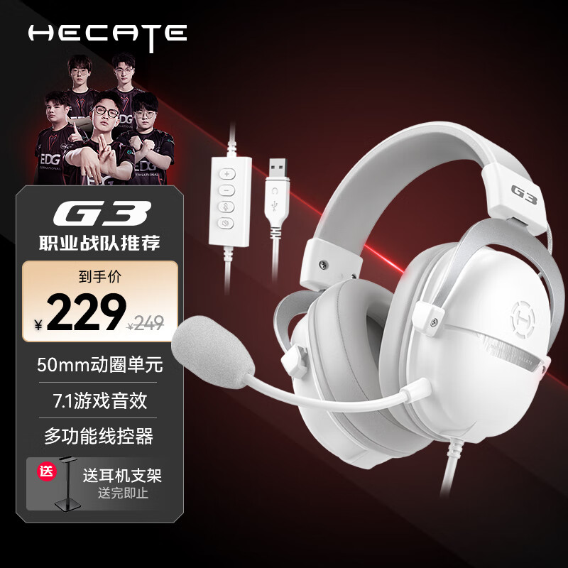 漫步者(EDIFIER)HECATE G3头戴式电竞游戏耳机 USB7.1声道有线电脑吃鸡耳机降噪麦克风 白色价格:249.00元!