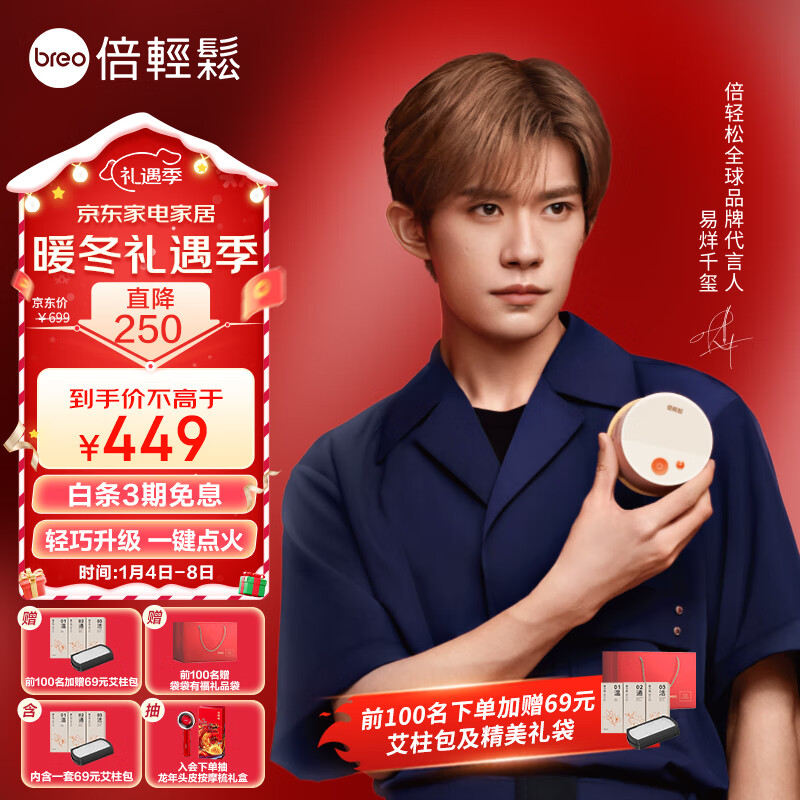 倍轻松(breo)姜小竹A2标准版艾灸盒月白色 家用便携无烟电子艾灸盒艾灸仪按摩仪器 新年生日礼物 易烊千玺同款价格:434.00元!