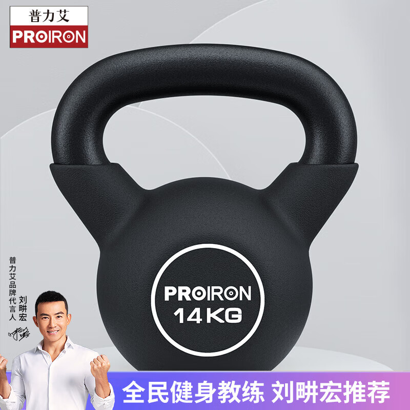PROIRON普力艾 壶铃男女提壶哑铃壶健身壶铃铸铁深蹲练臀器械浸塑 14KG价格:289.00元!
