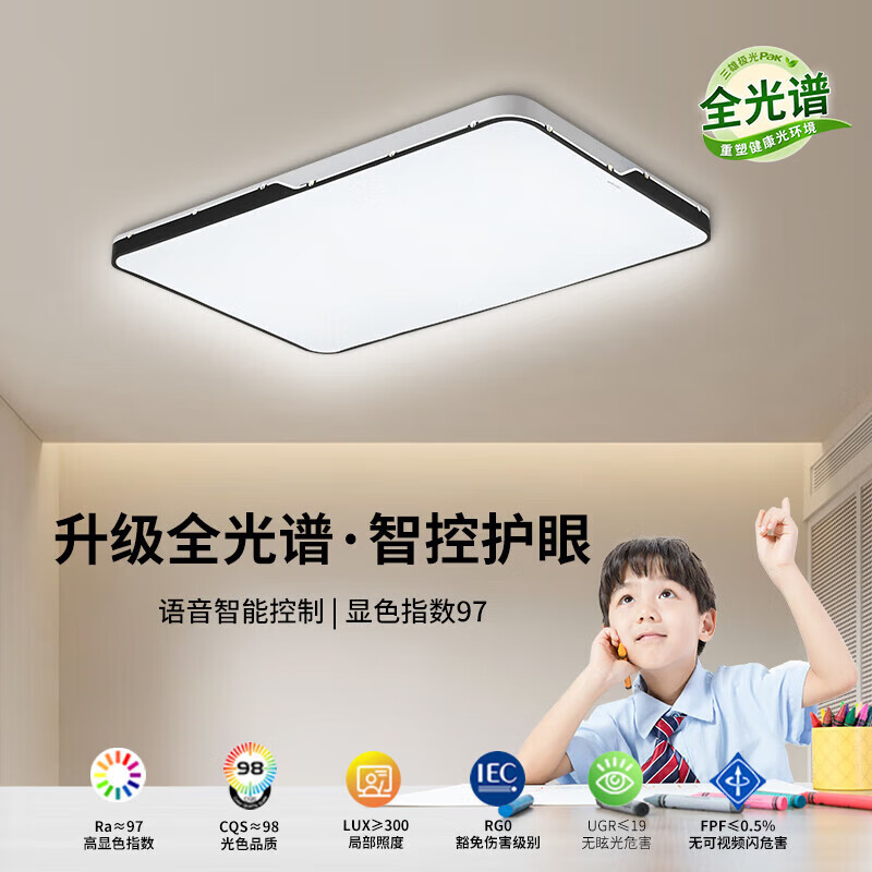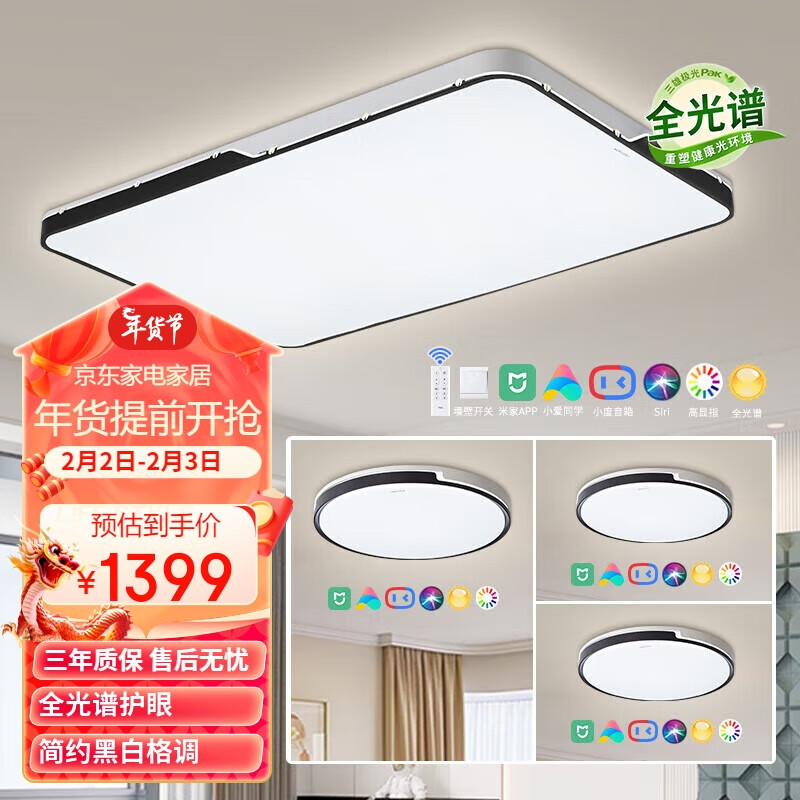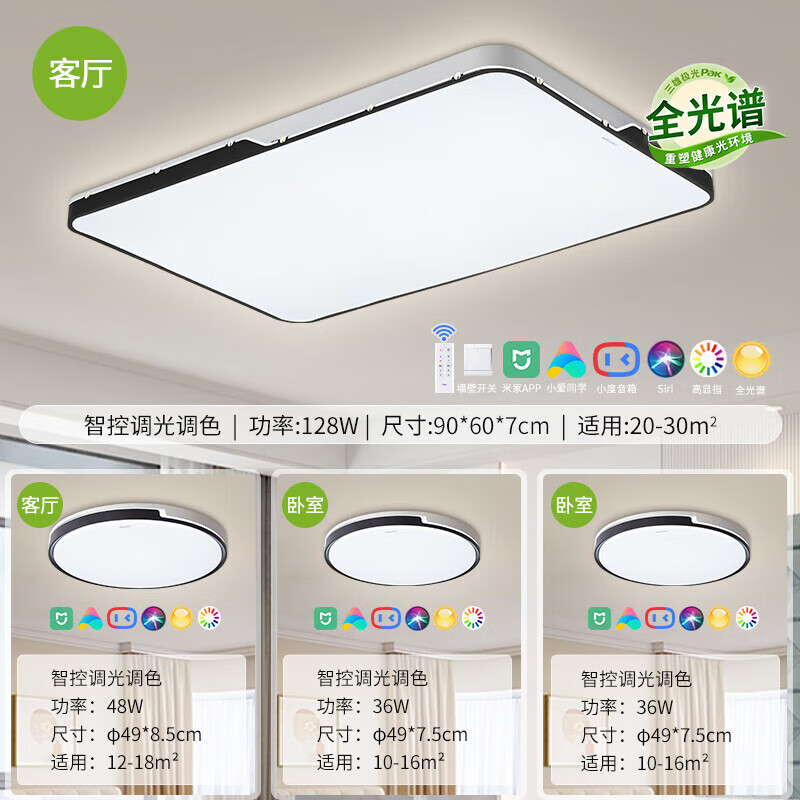 三雄极光全光谱吸顶灯智能客厅灯现代简约卧室极简全屋组合灯具灯饰套餐价格:1449.00元!