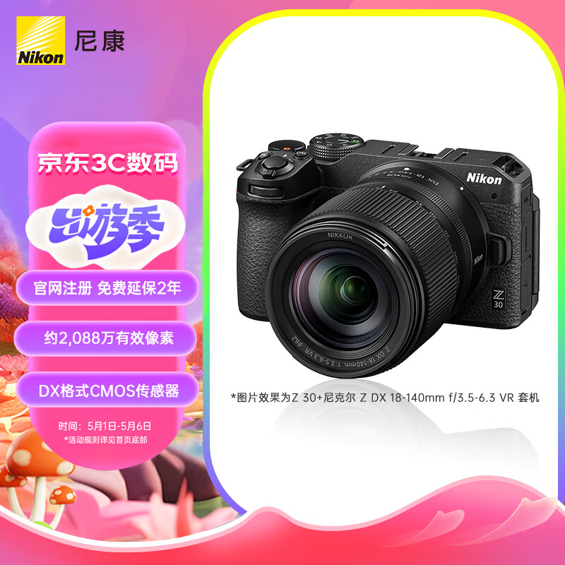 尼康(Nikon)Z30 Vlog视频 微单相机 无反相机 半画幅(Z DX 18-140mm f/3.5-6.3 VR)vlog视频相机价格:8799.00元!