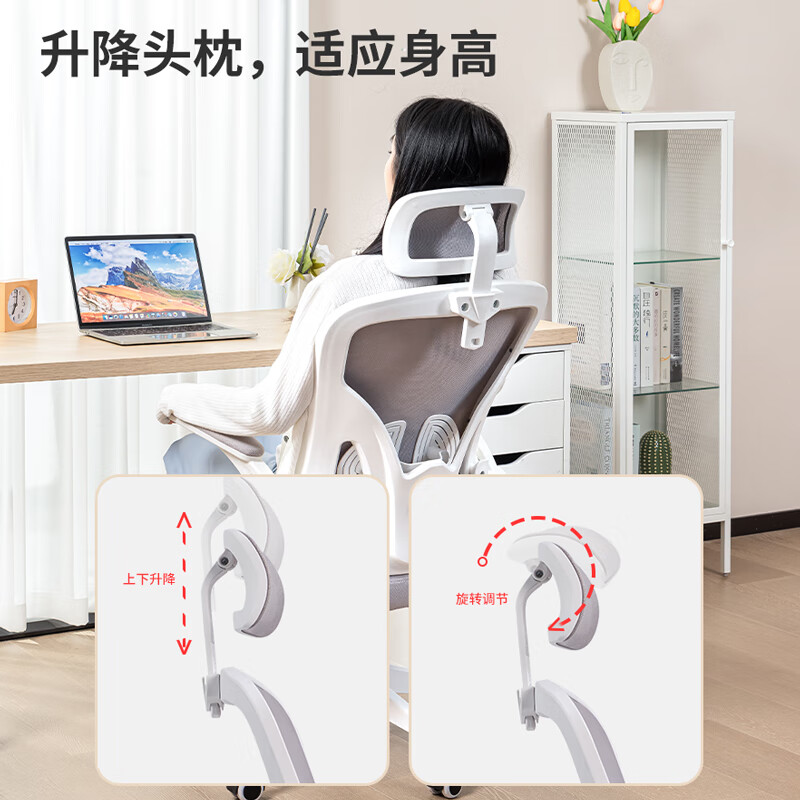 得力(deli)91025居家网椅 扶手可翻折电脑椅 旋转头枕可调节腰靠办公椅 灰色价格:399.00元!