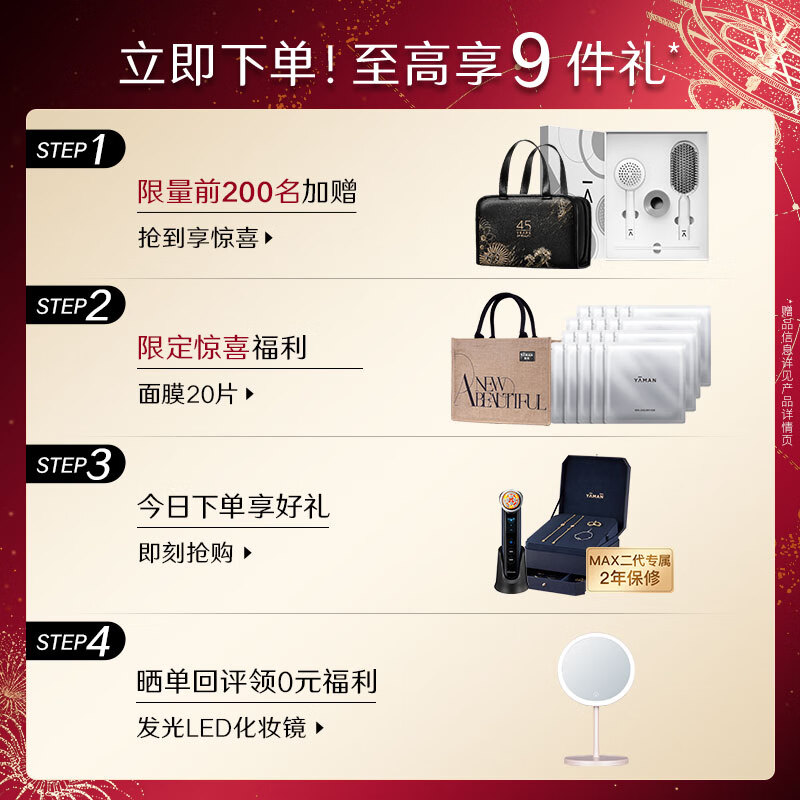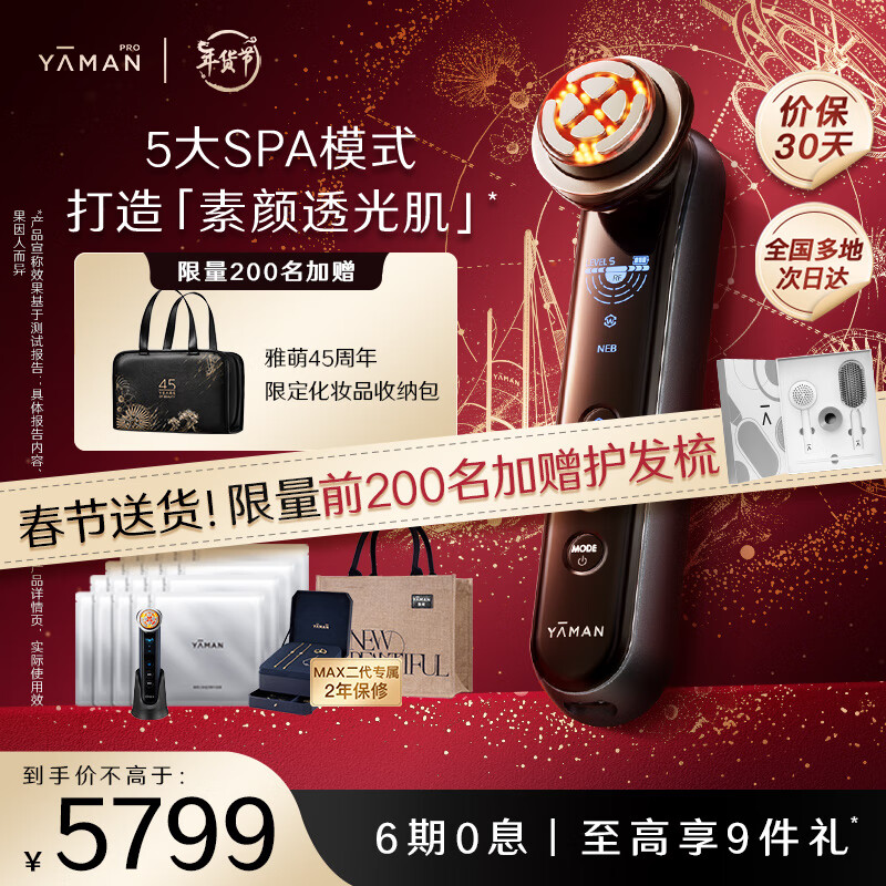 雅萌(YAMAN)MAX二代 旗舰版美容仪 射频仪 脸部按摩眼部淡纹面部v脸紧致 嫩肤提亮 情人节新年礼物 送女生价格:6499.00元!