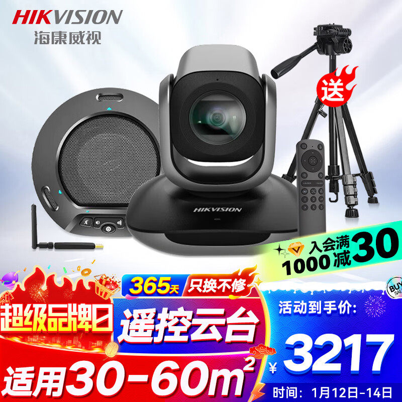 HIKVISION海康威视视频会议设备全套电脑摄像头套装自动变焦高清带麦克风扬声器直播无线会议系统解决方案价格:3417.00元!