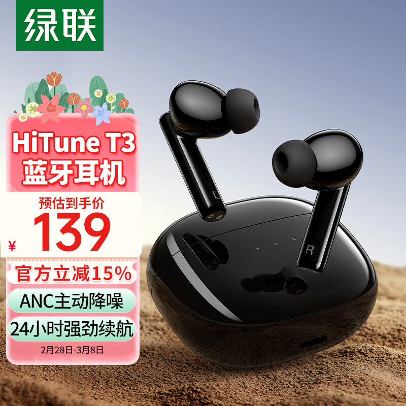 绿联(UGREEN)绿联 HiTune T3真无线蓝牙耳机 ANC主动降噪音乐耳机 通话降噪长续航 通用苹果华为小米手机 90401价格:164.00元!