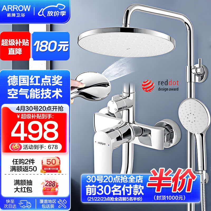 箭牌(ARROW)淋浴花洒套装 自洁淋浴喷头升级下出水 洗澡沐浴易洁手持顶喷 红点奖背喷花洒3354MS-P价格:629.00元!