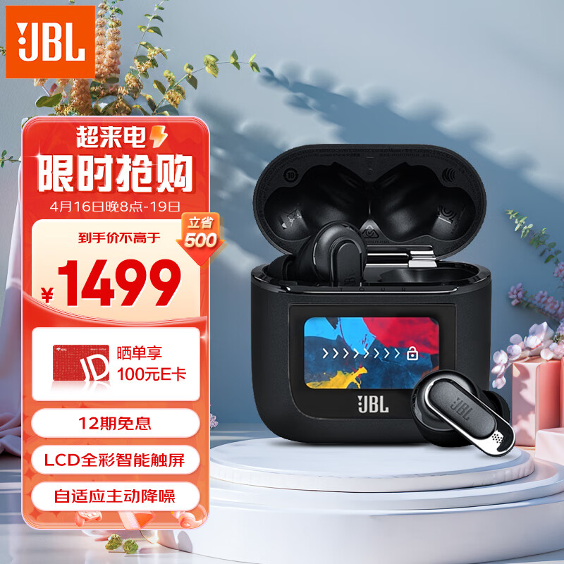 JBL TOUR PRO2无线蓝牙降噪耳机 LCD智能屏入耳式运动电竞游戏音乐耳机 男士礼物 钢琴黑价格:1499.00元!