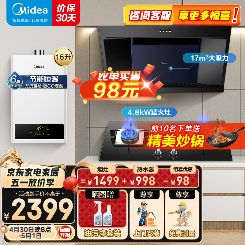 美的(Midea)侧吸抽油烟机灶具烟灶多件套装燃气热水器家用烟灶燃热厨房三件套JP11+Q217B+16HWF天然气价格:2449.00元!