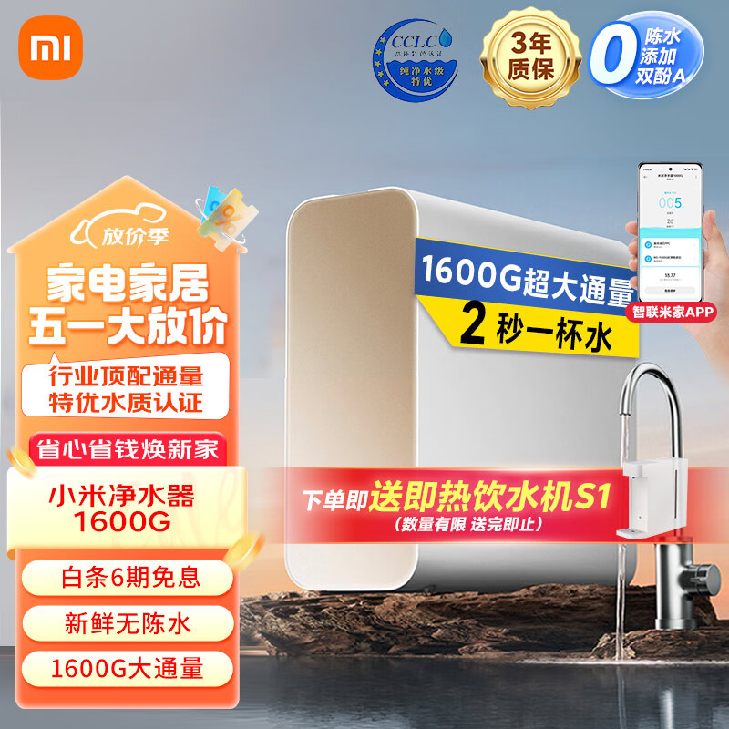 米家小米净水器1600G厨下净水器家用直饮净水机?2秒一杯水 首杯可饮母婴直饮 长效RO滤芯6年免更换价格:3499.00元!