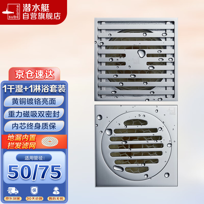 潜水艇(Submarine)Tk11 大排量铜镀铬镜面防臭地漏两件套 淋浴普通地漏套装50管径价格:185.00元!