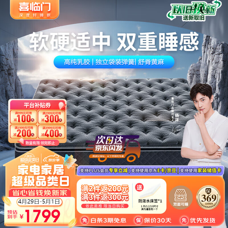 喜临门床垫 进口高纯乳胶 独立弹簧席梦思 黄麻垫 金星knight 1.8x2米价格:2299.00元!