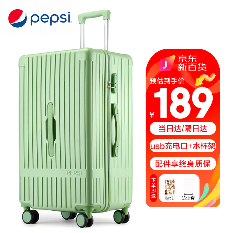 百事(PEPSI)行李箱男超大容量拉杆箱女20英寸旅行箱大号万向轮学生托运密码箱价格:189.00元!