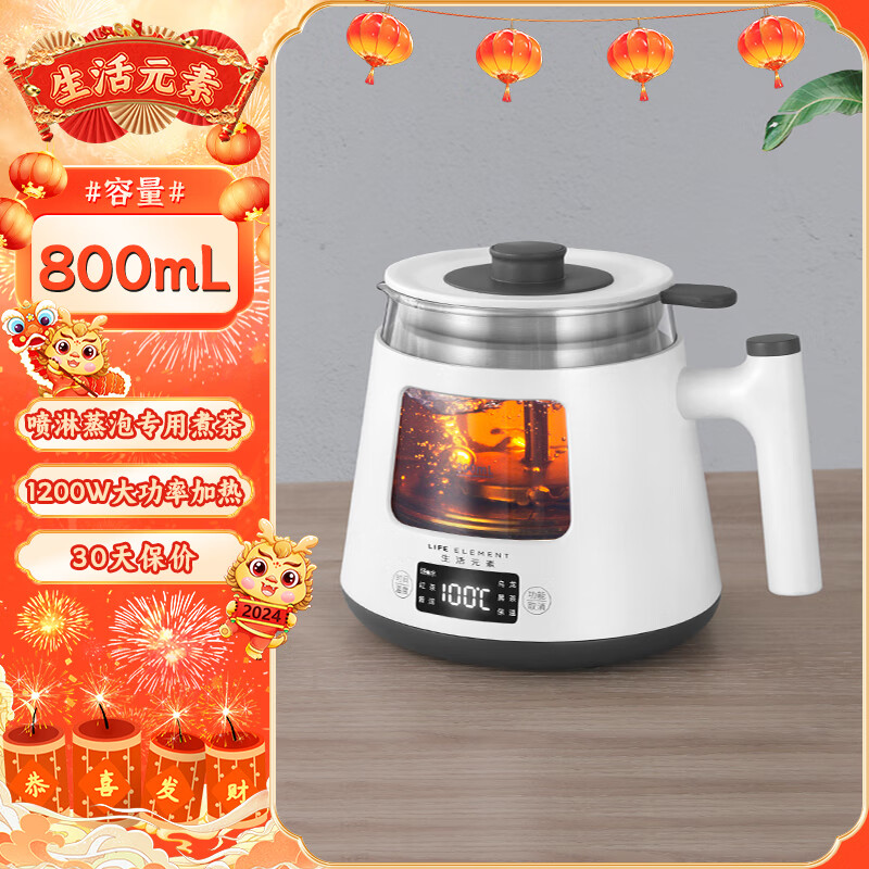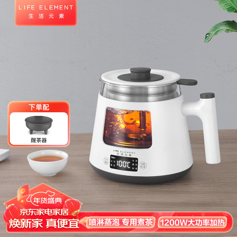 生活元素(LIFE ELEMENT)养生壶 迷你煮茶器 蒸汽喷淋式煮茶壶 普洱黑茶养生杯 电茶壶 0.8L智能 I19价格:239.00元!