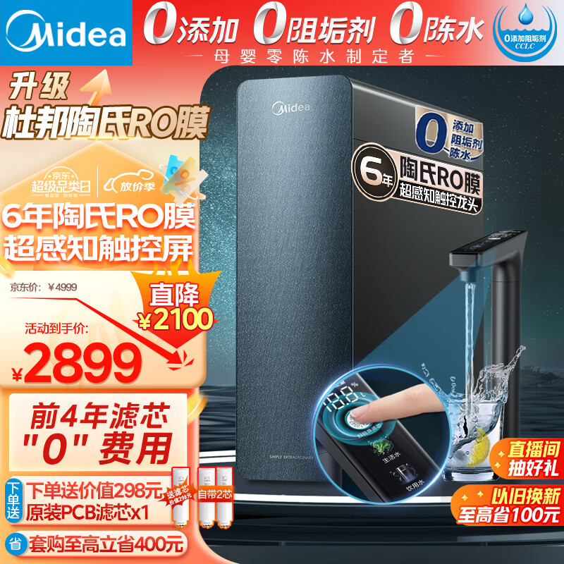美的净水器家用净水机星河1200G PRO 6年长效陶氏RO反渗透净水器厨下式直饮机 鲜活零陈水智能触控屏价格:2899.00元!