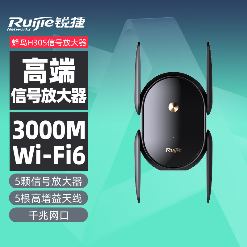 锐捷蜂鸟WiFi信号放大器H30S 3000Mwifi6 5G双频家用卧室路由器 WiFi增强器无线信号扩展器中继穿墙王价格:249.00元!