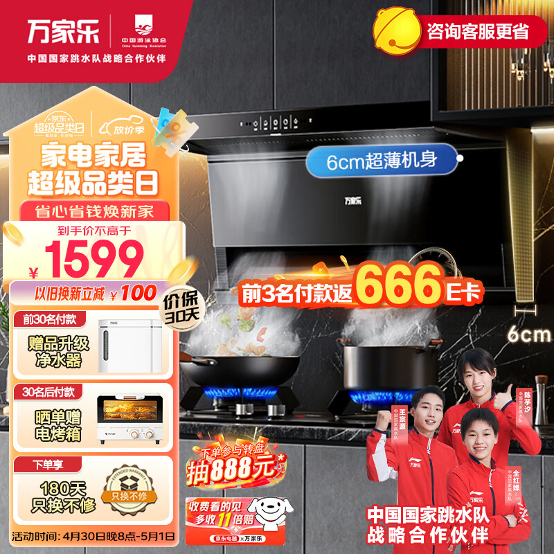 万家乐顶侧双吸油烟机 6cm超薄机身挥手智控自动清洁 23立方爆炒大吸力家用免拆洗抽油烟机CXW-360-TAK5价格:1799.00元!