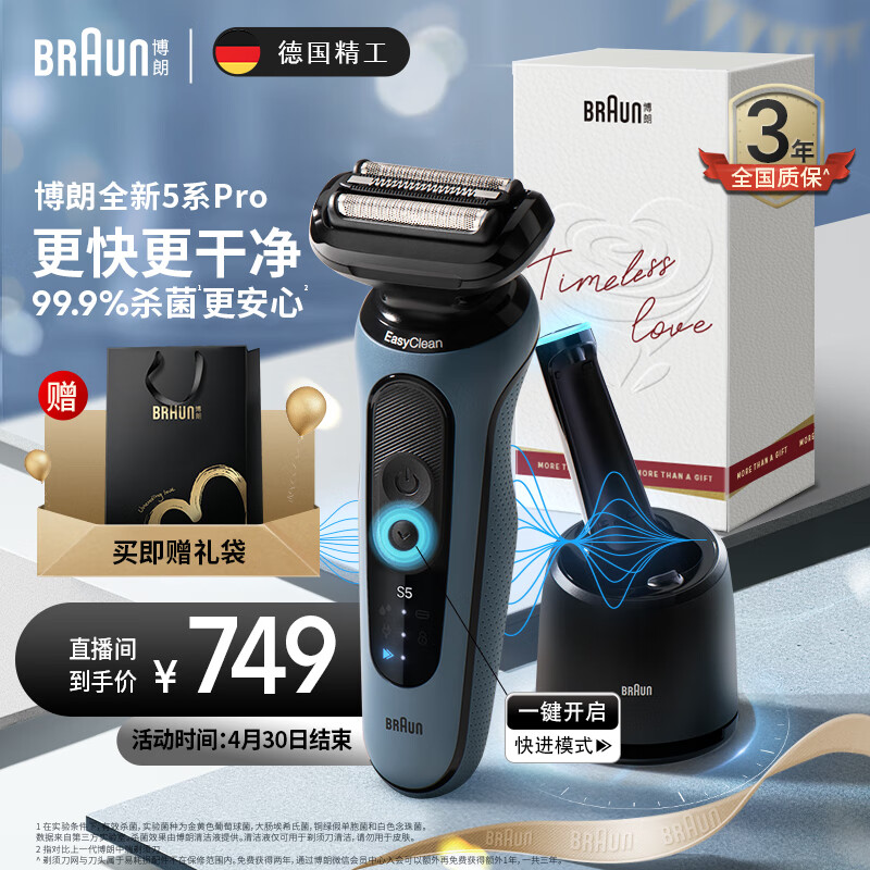 博朗(BRAUN)高效5系Pro远空蓝升级版清洁护理中心电动剃须刀剃须刀往复式刮胡刀送男友价格:799.00元!