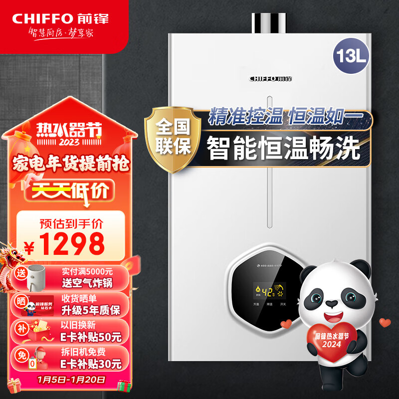 前锋(CHIFFO)燃气热水器 7秒速热智能控温 家用节能强排式厨卫通用天然气热水器B01R高光白 JSQ25-13B01R 13升【性价比推荐】 高光白价格:2198.00元!