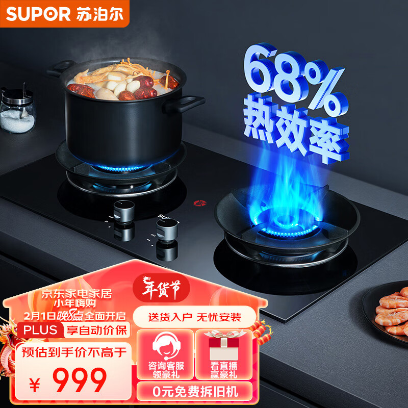 苏泊尔(SUPOR)燃气灶双灶具 燃气灶家用液化气灶 双层聚能锅支架 5.0kW火力68%热效率 DB39液价格:999.00元!
