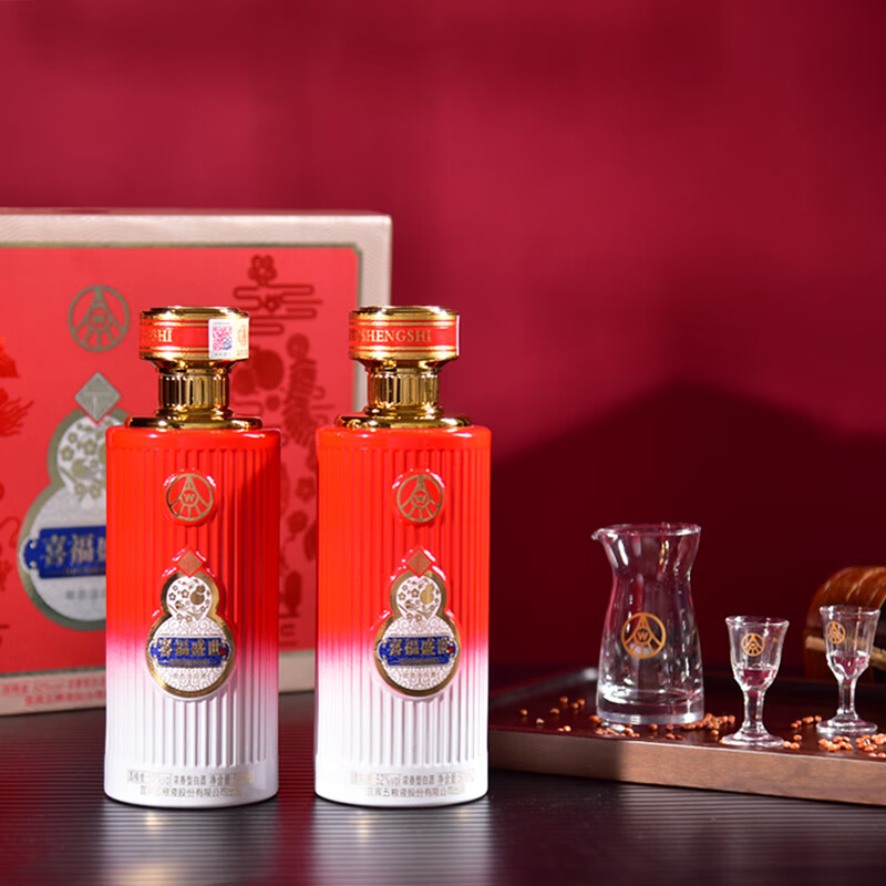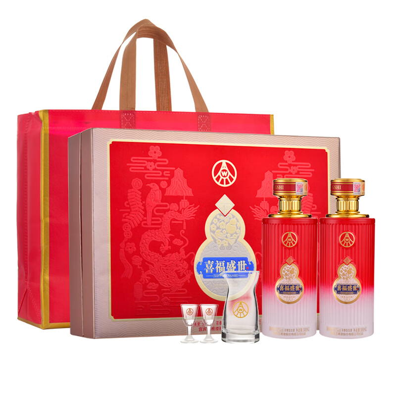 五粮液股份 喜福盛世 福禄 浓香型白酒 52度 500ml*2瓶 礼盒装 送礼佳品价格:138.00元!
