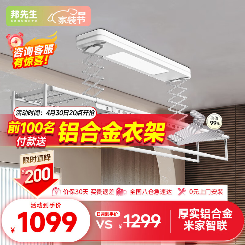 邦先生智能电动晾衣架阳台全自动升降小户型米家用凉衣杆晒衣机M50S米家价格:1299.00元!