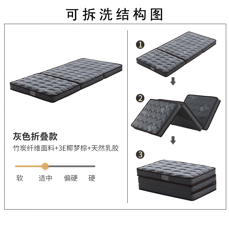 新岚椰棕床垫竹炭灰三折加乳胶榻榻米垫单双人垫硬床垫 90*190*8cm价格:386.00元!