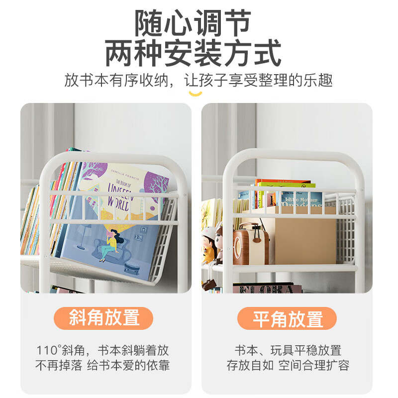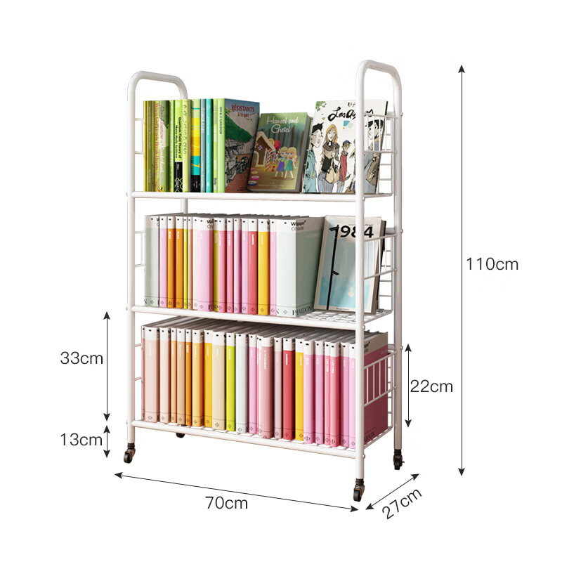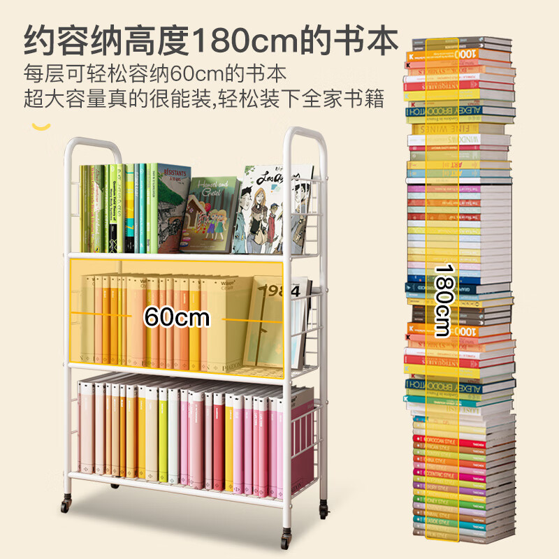 喻品书架落地可移动书柜客厅杂志架学生小推车置物架 ZW72直角三层价格:169.00元!