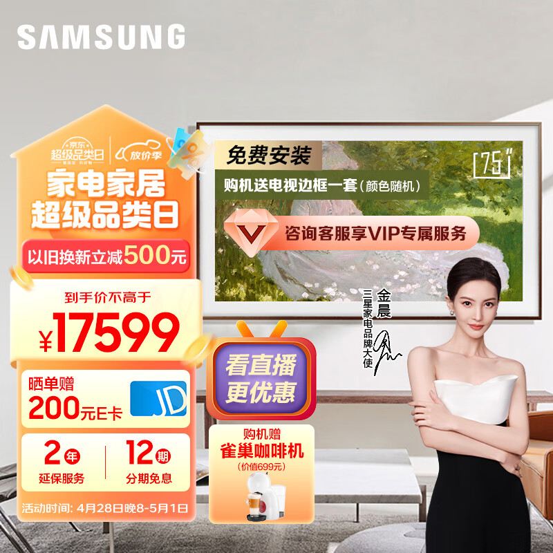 三星(SAMSUNG)75LS03C 75英寸 frame画壁艺术电视 120Hz QLED量子点 超薄4K 空间美学 QA75LS03CAJXXZ价格:15999.00元!