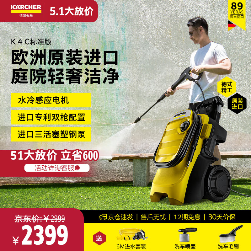 KARCHER德国卡赫家用洗车机 洗车高压水枪清洗机220V水冷感应K4C原装进口价格:2759.00元!