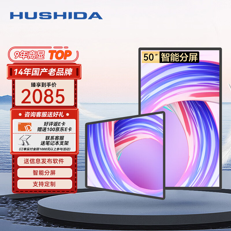 互视达(HUSHIDA)50英寸壁挂广告机显示屏 高清液晶数字标牌信息视窗吊挂宣传屏 网络版(非触控触摸)LY-50价格:2085.00元!