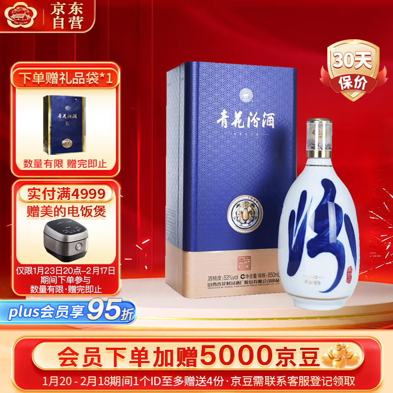 汾酒 青花30复兴版生肖虎 清香型白酒 53度 850ml 年货送礼价格:2199.00元!