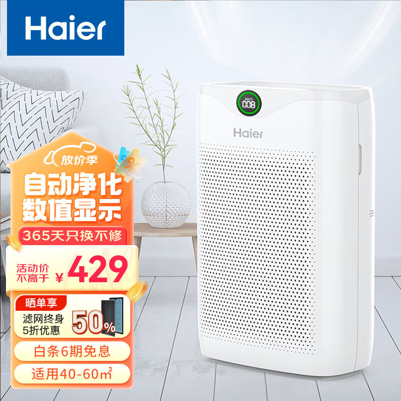 海尔(Haier)空气净化器除甲醛除雾霾除烟味母婴家用除灰尘杀菌KJ200F-M900A数显升级版价格:429.00元!