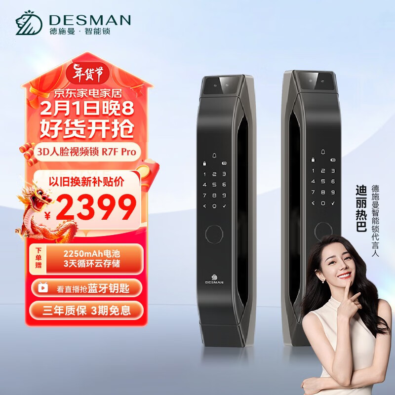 德施曼(DESMAN)3D人脸智能门锁 密码门禁防盗指纹锁 可视频猫眼带摄像头R7FPro黑价格:2699.00元!