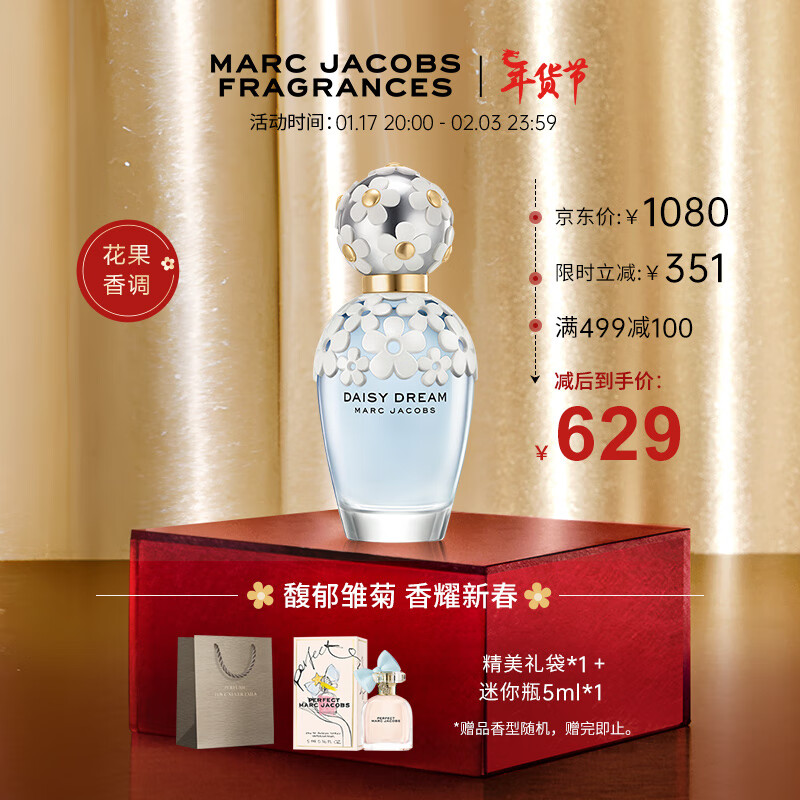 莫杰(MARC JACOBS)雏菊梦境女士淡香水100ml 情人节新年生日礼物送女友 香水女价格:729.00元!